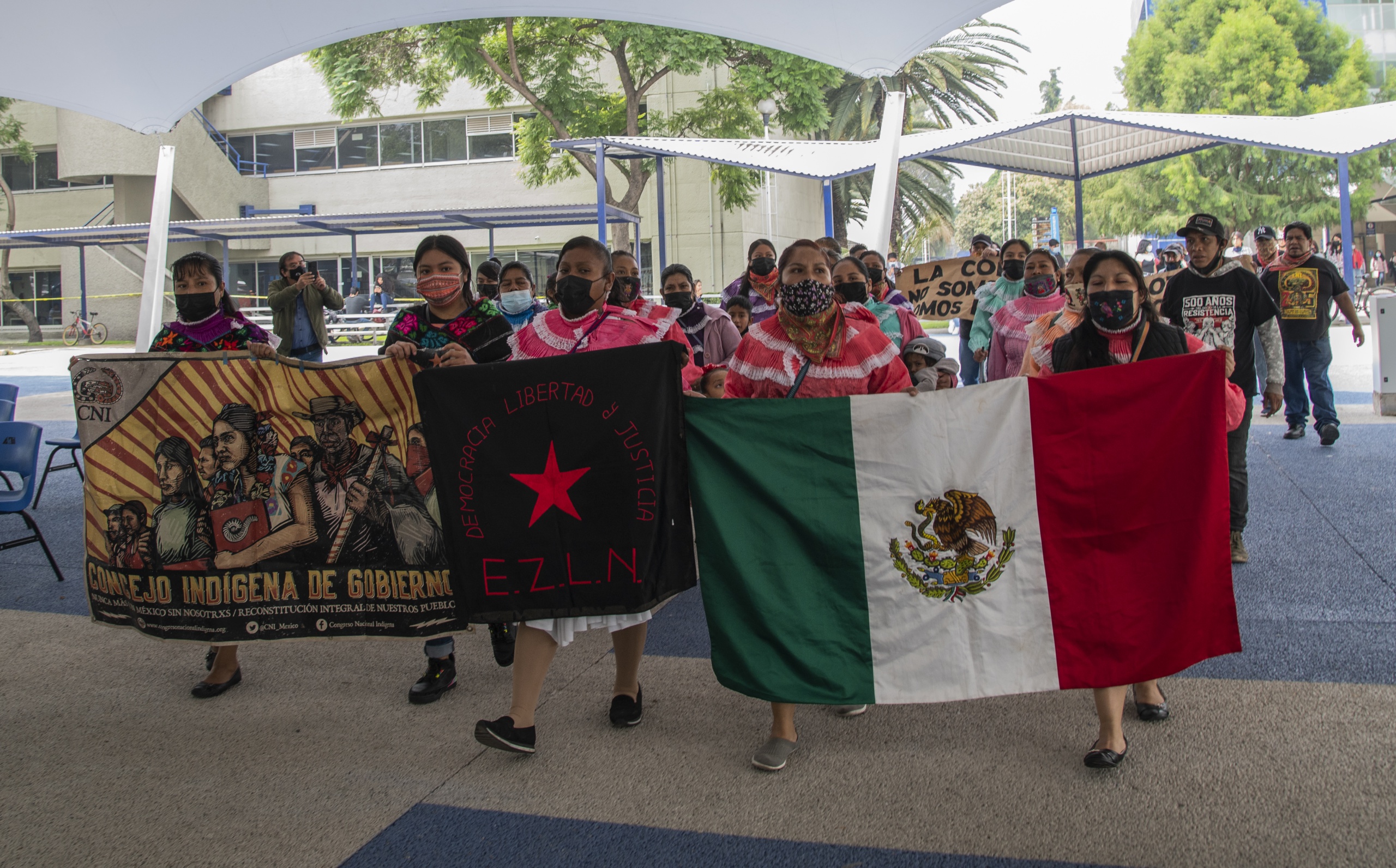 Integrantes de la comunidad indígena otomí de Santiago Mexquititlán, del municipio de Amealco, en el estado de Querétaro, quienes residen en Ciudad de México, llegaron a la UAM Xochimilco entonando proclamas y consignas por los derechos a la educación, la salud, la vivienda, el trabajo y el respeto a la autonomía.