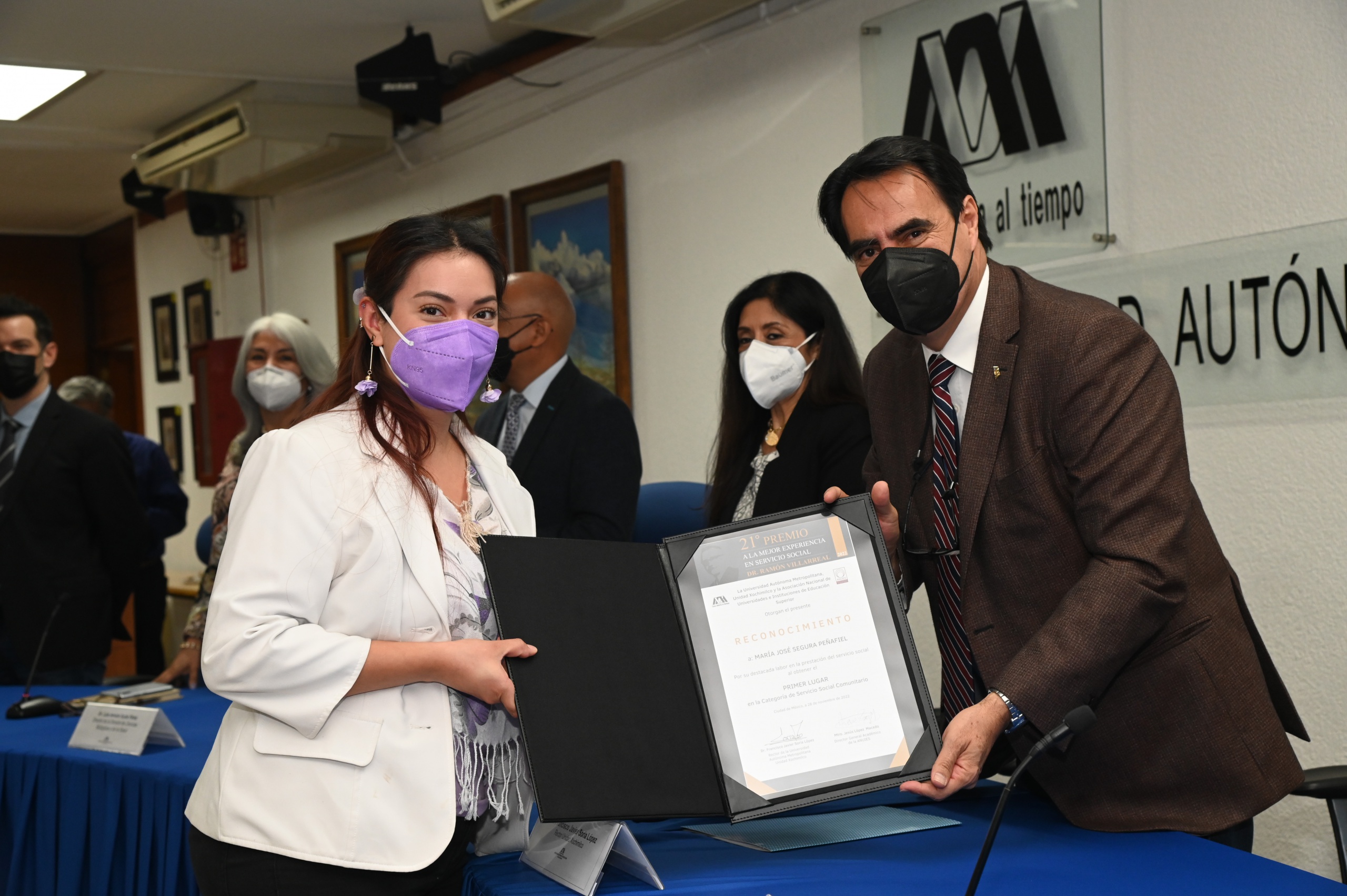 La Universidad Autónoma Metropolitana (UAM), Unidad Xochimilco, encabezada por el doctor Francisco Javier Soria López, rector de la Unidad, y la Asociación Nacional de Universidades e Instituciones de Educación Superior (ANUIES), representada por la maestra Beatriz Castillo Escamilla, responsable del Proyecto de Servicio Social, a través de la Sección de Servicio Social y Orientación Educativa, dirigida por el maestro Abel Antonio Ramírez Juárez, adscrita a la Coordinación de Docencia, a cargo del doctor Leonel Pérez Exposito, otorgaron el 21 Premio a la mejor experiencia en servicio social Dr. Ramón Villarreal 2022, que reconoce la participación proactiva de las y los prestadores de servicio social, expresada en proyectos de diversos perfiles y estrategias innovadoras que impactan en las comunidades e instituciones.
