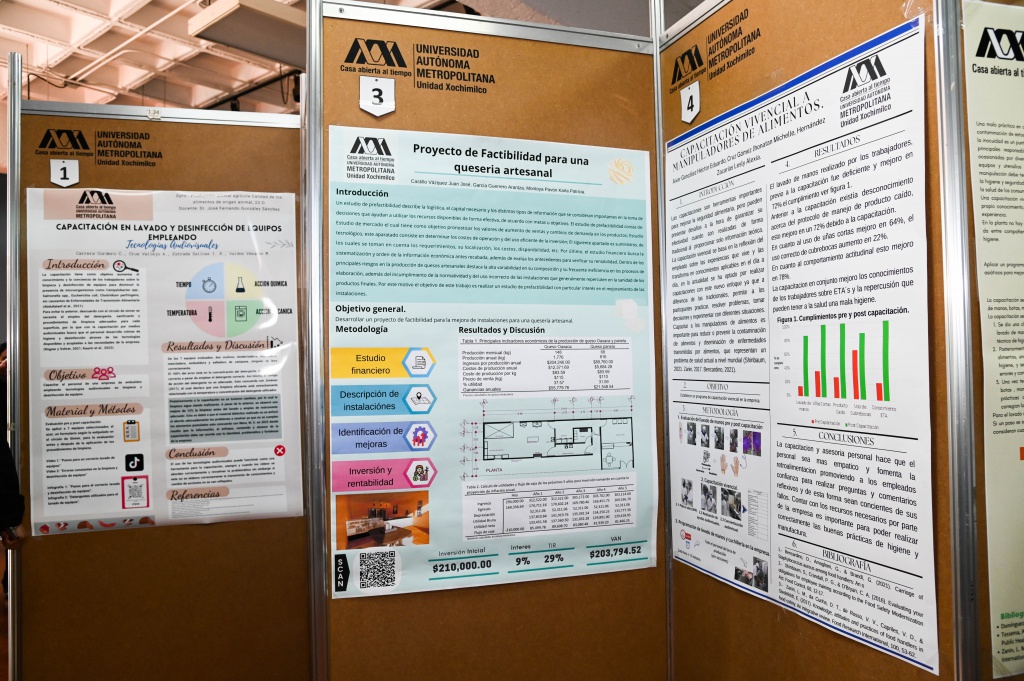 Los trabajos plasmados en carteles concretan los temas de higiene, los procesos de elaboración de productos cárnicos, la inocuidad alimentaria y la inspección sanitaria de productos de origen animal que involucran al médico veterinario en el ámbito de la industria alimentaria, desde la crianza de los animales hasta la elaboración de productos procesados. Estos conocimientos enfocados en salvaguardar y preservar la salud del ser humano, se abordan en el módulo que imparten la profesora-investigadora Mónica Peña González y los profesores investigadores Francisco Héctor Chamorro Ramírez y José Fernando González Sánchez, quien es Coordinador de la licenciatura de MVZ.
