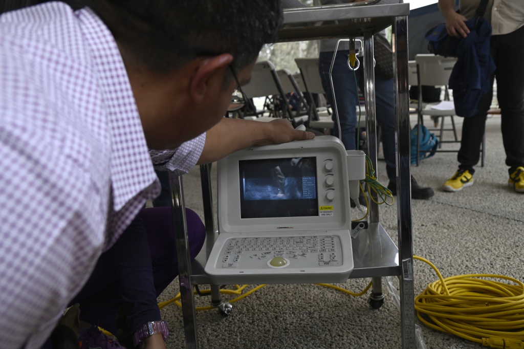 Los jóvenes del taller de “Anatomía, fisiología animal y ultrasonografía reproductiva”, tuvieron la oportunidad de hacer la ultrasonografía a una borrega con problemas en la etapa final de gestación, esta experiencia representa para Uriel González Escobar, estudiante de la licenciatura de Medicina Veterinaria Zootecnia, la oportunidad de aprender a resolver situaciones que no se enseñan en los libros, “en este caso  vemos algo diferente a lo que nos dice la teoría pues en la etapa final de gestación deberíamos tener un útero agrandado y lleno de líquido, pero lo que vemos es diferente”, refirió.
