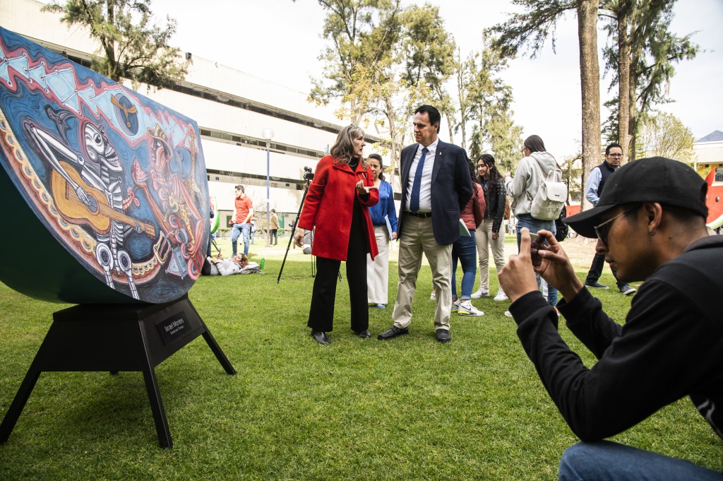 El doctor Francisco Javier Soria López, rector de la UAM Xochimilco, inauguró y presenció la develación de las piezas artísticas, acompañado de una comunidad universitaria entusiasta y ávida por ser partícipe de esta gran fiesta cromática, que estará diseminada por todo el campus a lo largo de este año. Con las letras de gran formato que aluden a nuestra identidad “Soy UAM” como fondo, el rector agradeció las facilidades para llevarla a cabo a la maestra Nancy Mayagoitia, curadora de la exposición, además de la presencia de ocho de los artistas oaxaqueños y las críticas de arte: Blanca González Rosas y Avelina Lésper en esta celebración.