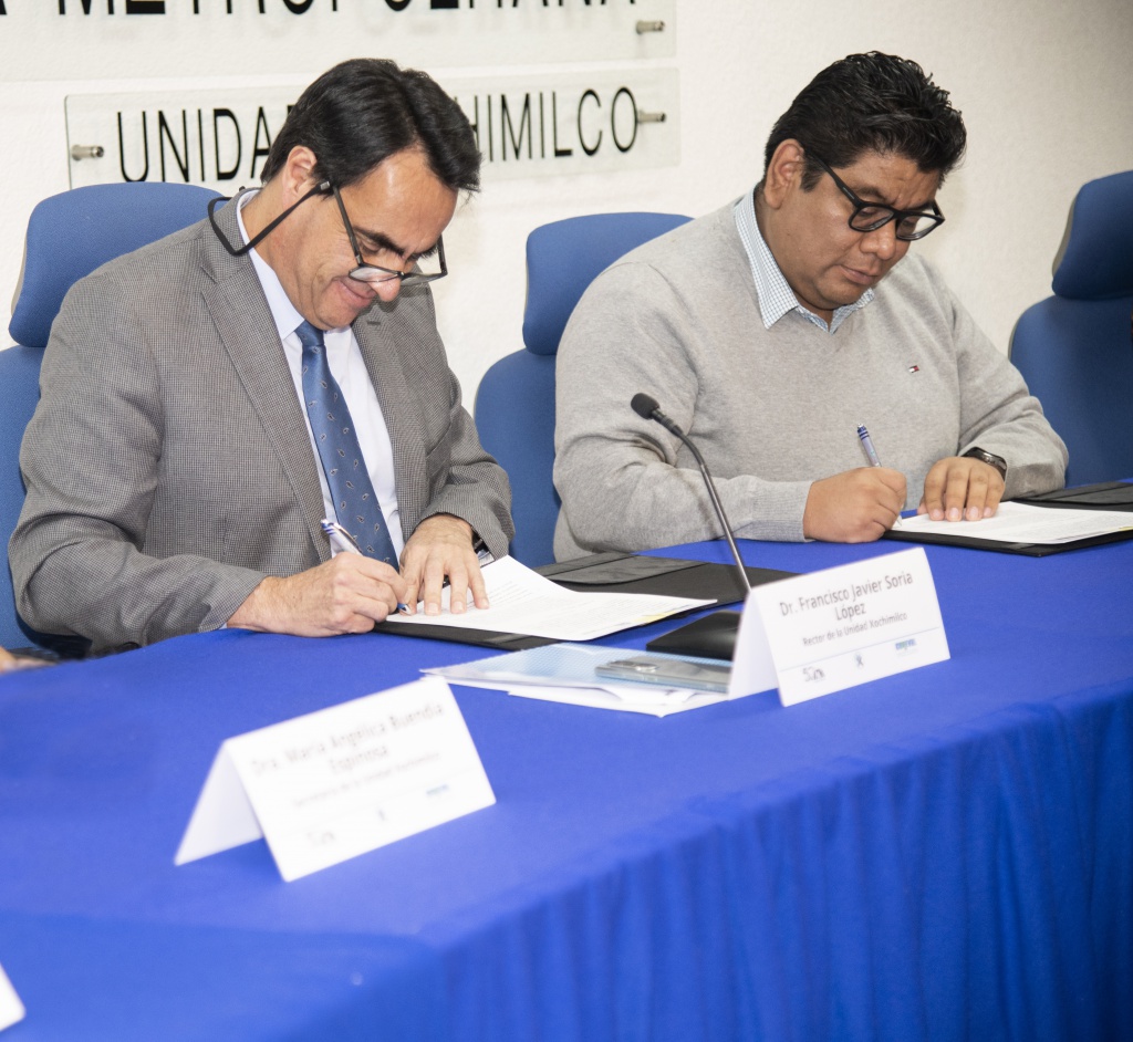 Durante la firma de convenio estuvieron como testigos de honor las doctoras María Angélica Buendía Espinosa, secretaria de la Unidad Xochimilco; Esthela Sotelo Núñez, directora de la División de Ciencias Sociales y Humanidades, e Irma Gabriela Anaya Saavedra, coordinadora de Vinculación y Fortalecimiento Académico de la UAM-X.