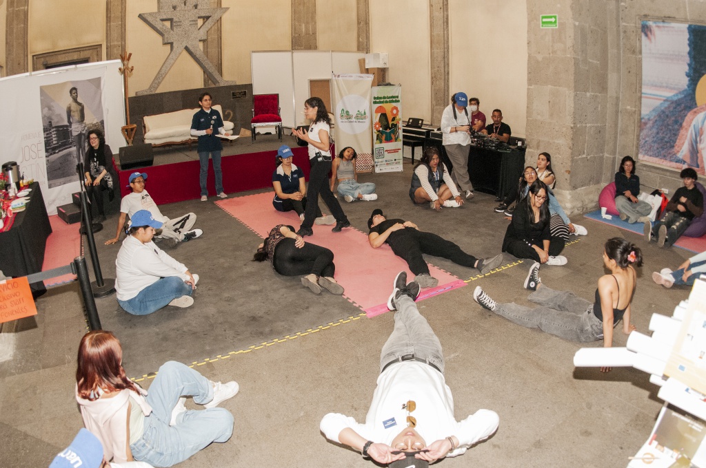 La sala de lectura “Ajolotes literarios” y el Taller de Danza Contemporánea de la Sección de Actividades Culturales, perteneciente a la Coordinación de Extensión Universitaria y Difusión Cultural (UAM-Xochimilco), se unieron para ofrecer el taller “La palabra hecha danza” durante la 45a Feria Internacional del Libro del Palacio de Minería. El taller de libre expresión corporal fue impartido por la instructora Mireya Perea Mondragón al público asistente. Para dar lugar a la palabra, los ajolotes literarios, junto con la promotora cultural Gabriela Cruz Estrada, crearon un ambiente poético y de libre desplazamiento corpóreo por el bello recinto.