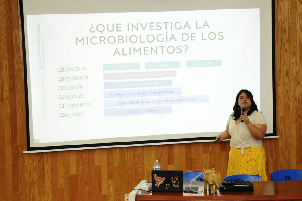 La egresada de esta universidad explicó que la ciencia microbiológica estudia la estructura de tamaño, forma y agrupación de los microorganismos; la ecología y comportamiento frente a la resistencia; las actitudes de supervivencia al ser intervenidos, y su crecimiento o capacidad de desarrollo en matrices alimentarias.