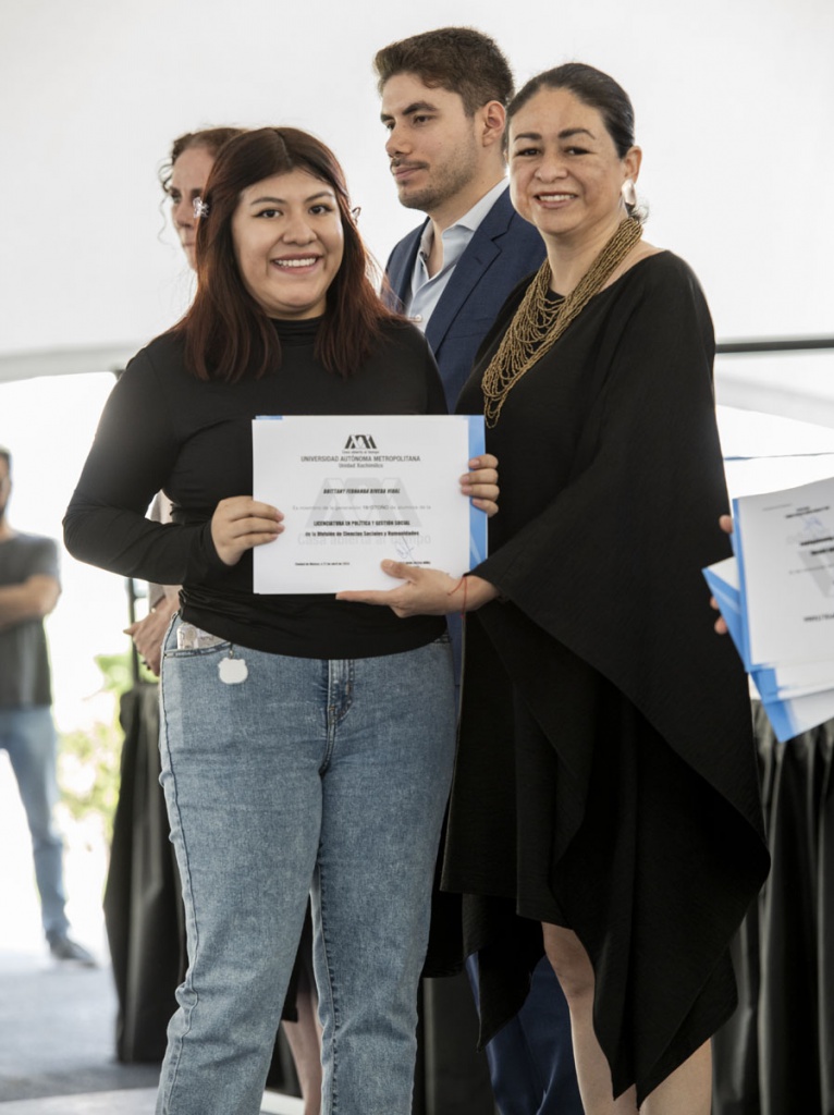 La ceremonia estuvo a cargo de la directora de la de División Ciencias Sociales y Humanidades (CSH), la Dra. Esthela Irene Sotelo Nuñez, acompañada de la Dra. María Elena Figueroa Díaz, el Mtro. Roberto Huerta Peruyero y el Dr. Juan José Carrillo Nieto, jefe del Departamento de Política y Cultura.