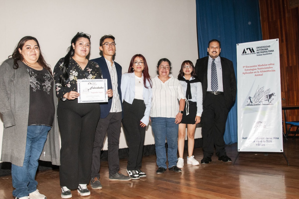 Los profesores investigadores del Departamento de Producción Agrícola y Animal, José Antonio Martínez García, Germán Mendoza Martínez, Fernando Xicotencatl Plata Pérez y Adrián López Trujillo, que imparten la licenciatura de Medicina Veterinaria y Zootecnia, convocaron al 5° encuentro modular “Estrategias Nutricionales Aplicadas en la Alimentación Animal”, foro en el que ochenta alumnas y alumnos de los trimestres V y VI, que cursaron el módulo “Manejo Nutricional y Alimentario de los Animales”, expusieron los resultados de sus investigaciones.