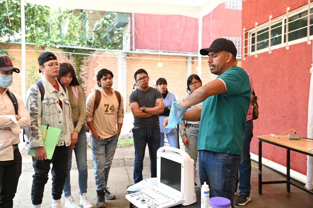 En el Hospital Veterinario de Enseñanza se vivió una intensa actividad docente con prácticas demostrativas simultáneas de diversas especies; manejo y procedimientos clínicos en perros, equinos y ovinos, así como el taller de evaluación de alimentos de origen animal en el laboratorio de Ciencia de la Carne y Salud Pública.