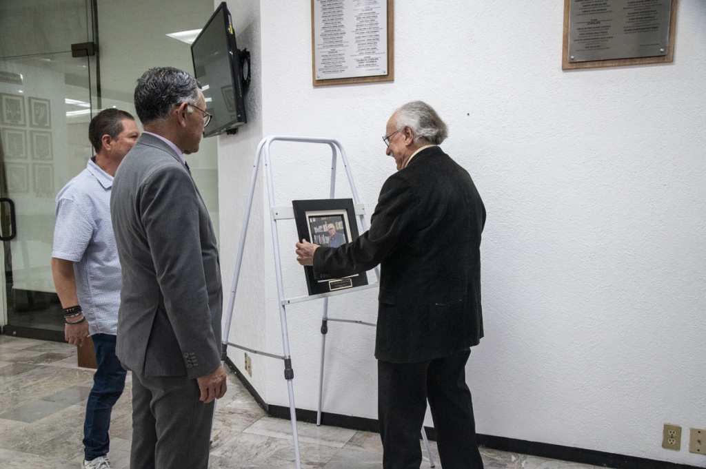 Al finalizar el acto, se colocó el retrato de Roberto Eibenschutz Hartman en la Sala de Honor Arquitecto Pedro Ramírez Vázquez que, a partir de esta fecha, forma parte de quienes por su esfuerzo y trayectoria han sido merecedores de este título honorífico universitario.