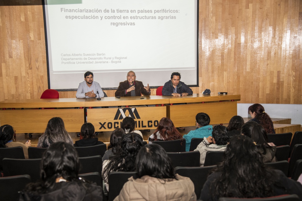 Lo anterior lo advirtió el doctor Carlos Suescún Barón, profesor de la Universidad Javeriana de Colombia y ex asesor del ministro de Agricultura de ese país, durante la conferencia “Financiarización de la tierra en países periféricos: especulando en estructuras agrarias regresivas”, organizada por la maestría en Sociedades Sustentables de la División de Ciencias Sociales y Humanidades (CSH) y la maestría en Ciencias y Artes para el Diseño de la División que lleva el mismo nombre (CyAD).