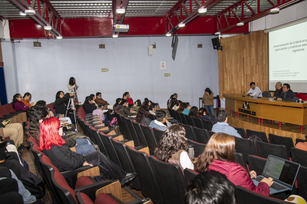 El auditorio Jesús Virchez reunió al alumnado y profesorado de ambos posgrados con el objetivo de generar un diálogo interdisciplinario entre los estudiosos de la sustentabilidad y responder a problemas complejos como la reestructuración territorial, los flujos migratorios y aquellos que tienen que ver con la tierra y los recursos naturales; ahí donde hoy el sector financiero centra su atención en los procesos de financiarizacion de la tierra.
