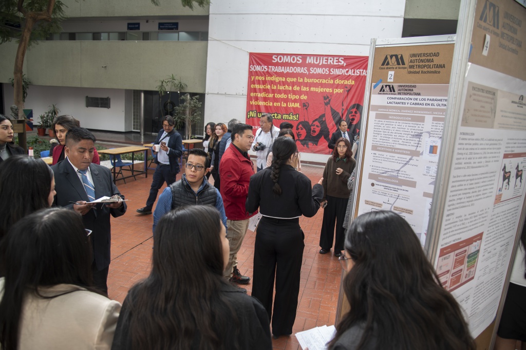 En el 6º. Encuentro Modular sobre Estrategias Nutricionales Aplicadas en la Alimentación Animal y el 2º. Encuentro Modular sobre Características y Valoración Multifuncional del Animal Sano, los futuros médicos veterinarios zootecnistas, del 4.º y 5.º módulo de la licenciatura, expusieron ante evaluadores externos, carteles que resumen el trabajo de investigación modular por equipo, en la Plaza Roja de la Universidad Autónoma Metropolitana, Unidad Xochimilco (UAM-X).