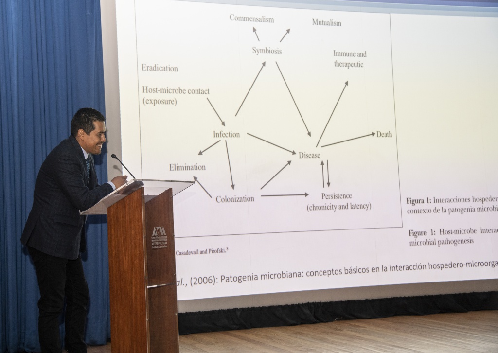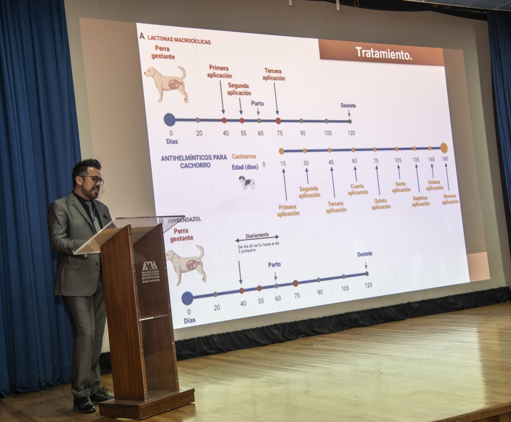 Tras la inauguración, encabezada por el doctor Luis Amado Ayala Pérez, director de la División de Ciencias Biológicas y de la Salud, el doctor en Ciencias Biomédicas, Víctor Hugo del Río Araiza, presentó la conferencia “Toxocariosis por Toxocara canis. Aspectos relevantes de una parasitosis desatendida”, en la que estableció la prevalencia de la enfermedad causada por el parásito toxocara canis, catalogado por distintas organizaciones mundiales del ámbito de la salud como uno de los diez contaminantes biológicos con potencial zoonótico.