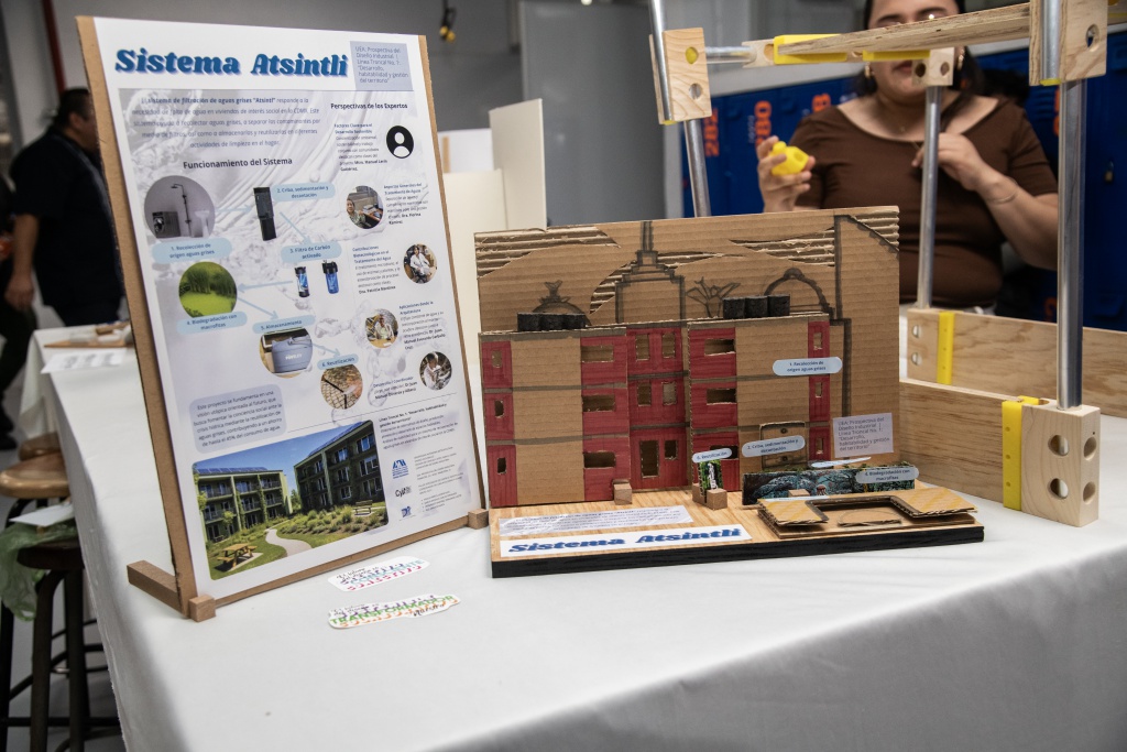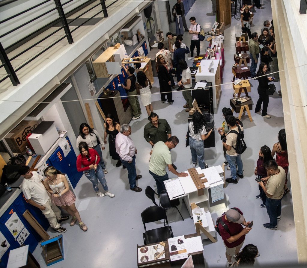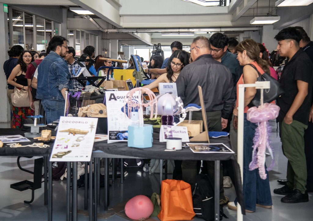 En los talleres de diseño industrial se presentaron propuestas del alumnado del 4º al 9º trimestre 25-I, que incluían modelos y prototipos de mobiliario casero, escolar y urbano, lámparas, vajillas, juegos didácticos y otros objetos funcionales, los cuales fueron explicados teórica y metodológicamente por alumnas y alumnos.