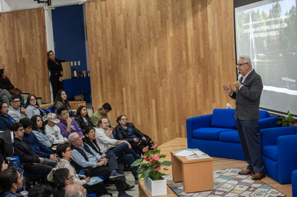 En la primera sesión, el arquitecto Mario Schjetnan Garduño estableció en su conferencia magistral la posibilidad de recuperar los espacios urbanos con diseños arquitectónicos que tengan como aliado el manejo del agua fluvial de forma integral a partir de una visión que priorice los valores, las necesidades sociales, ambientales y urbanas de las comunidades.