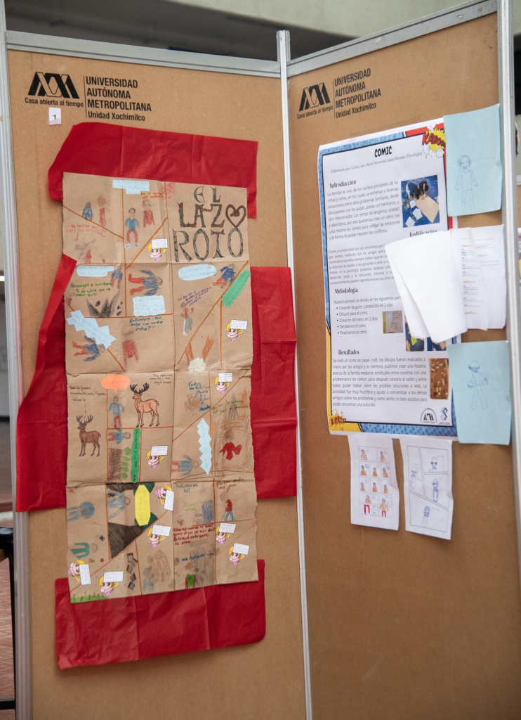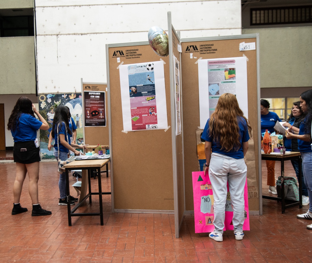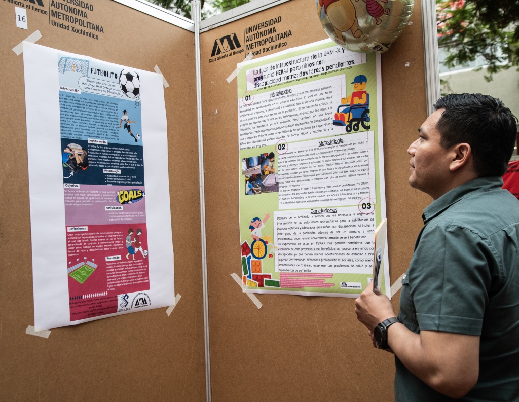 Al finalizar el acto los asistentes recorrieron la exposición de carteles científicos, que se exhibieron en la Plaza Roja, ubicada en la planta baja del edificio central. Entre las investigaciones se encontraba la de Ofir Leonardo Ortega Delgado y su mentora Akiro Daniela Fuentes Pérez, egresada de la licenciatura en Sociología. El proyecto “Inseguridad en nuestras colonias” consistió en observar, comparar y describir los antecedentes de inseguridad en algunas colonias de las alcaldías Iztapalapa y Magdalena Contreras. A partir de recabar experiencias individuales y colectivas de los colonos, la investigación reportó que hay similitudes en los patrones de inseguridad entre las colonias de estudio y un incremento de la misma.
