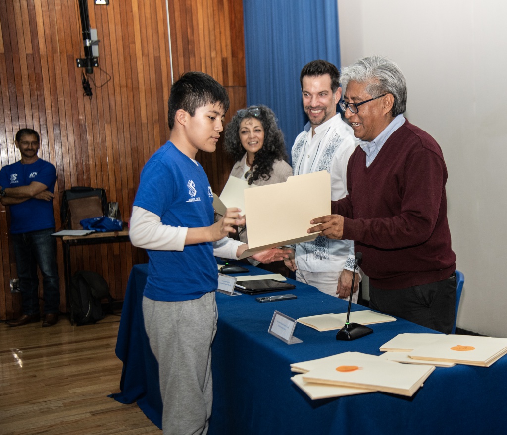 Momento emotivo fue la proyección audiovisual que recupera el trabajo colectivo y el sentir de niñas, niños y prestadores de servicio social, seguida de los testimonios de mentores, amigos y familiares, quienes coincidieron en destacar la contribución del programa en el aprendizaje de valores como la tolerancia, la empatía y el valor de la amistad. Refirieron que el aprendizaje de vida contribuirá a fortalecer las habilidades escolares, profesionales y sociales de cada uno de los integrantes.