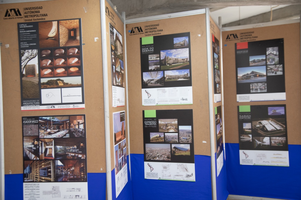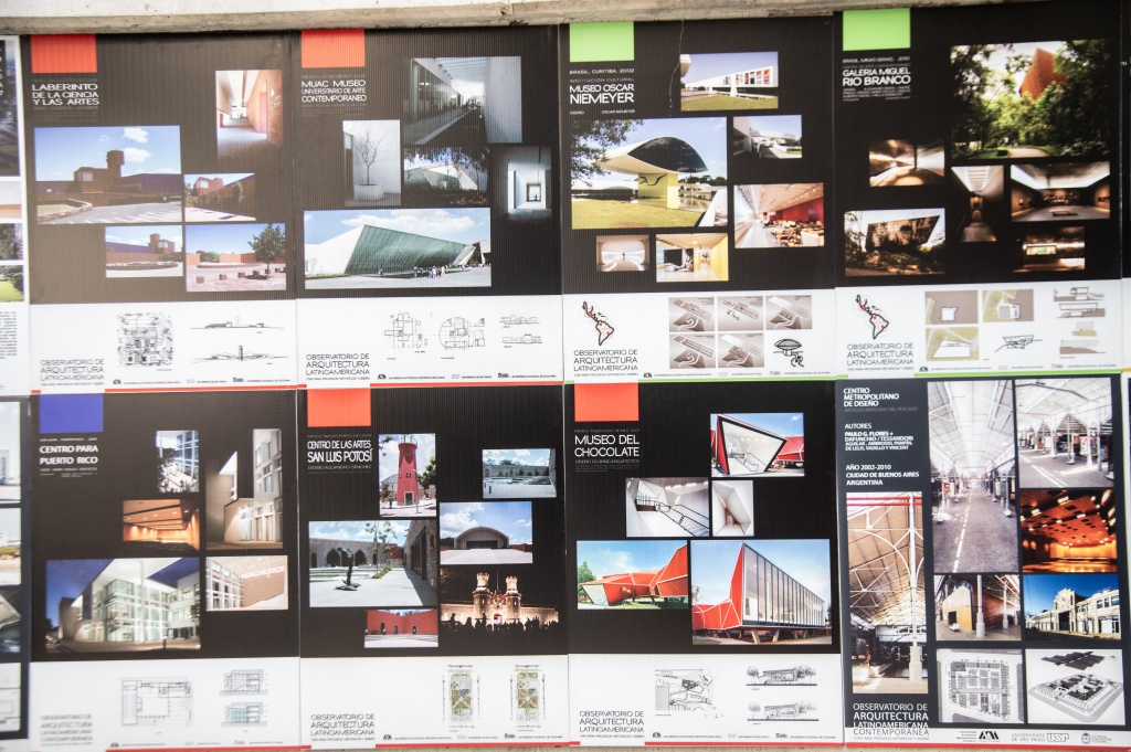La exposición de carteles del Observatorio de Arquitectura Latinoamericana Contemporánea de las instituciones participantes son ejemplos impresionantes de arquitectura contemporánea, entre las que figuran: la Escuela Parque Artes y Ciencia (2006) y el Edificio de oficinas Sede Da Fhe (2005) de Brasil;  la Escuela de Artes Plásticas (2007), Sport City (2013), Asador Vasco (2007) de Oaxaca, México; Escuela de Bellas Artes Ernesto Ramos Antonini (2012), Puerto Rico; Institución Educativa y Centro comunitario Fundación Pies Descalzos (2009), de Colombia, entre otros.